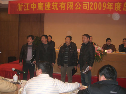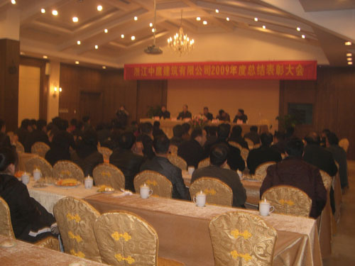 2010年3月6日,浙江中鹰建筑有限公司2009年度总结表彰大会在桐庐巴比松度假山庄隆重举行。公司总经理陈卫、公司各部门员工、建设局、质监站、房管处等多位领导、临安分公司经理及员工、项目经理、项目部管理人员、受表彰员工等近100人参加会议。