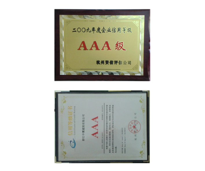依据中国人民银行《信贷市场和银行间债券市场信用评级规范》,经对企业基本素质、经济实力、偿债能力、经营效益及发展前景等方面的综合评价,我公司评定为2009年度信用等级为AAA级单位。