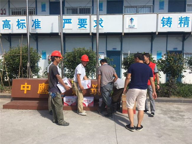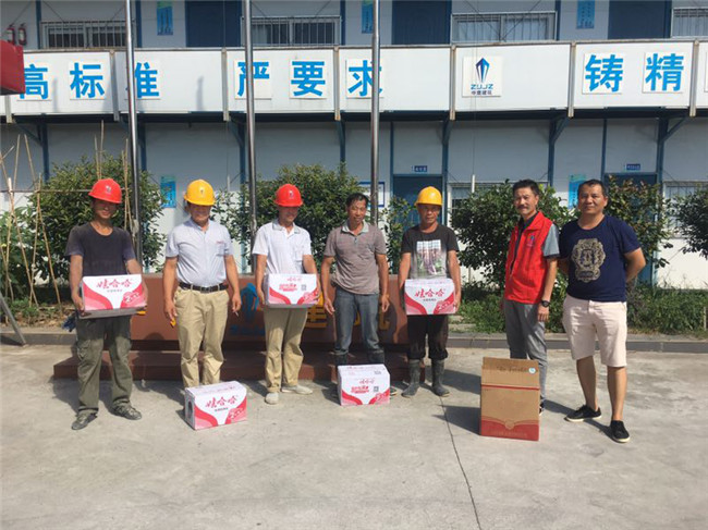 骄阳似火,高温持续。七月以来,公司党支部组织工程部有关人员带着矿泉水和藿香正气丸、保济丸等暑季药品慰问高温下辛劳奋战在滩头安置房、杭州冠和机械有限公司厂房、横村镇西环路边2号地块等多个施工项目现场的一线工人,向不顾高温坚守一线的工人表示诚挚的感谢,送去“清凉”和关爱。