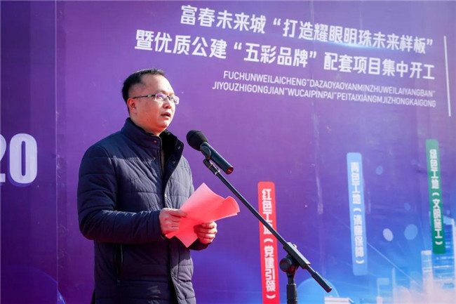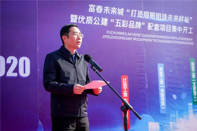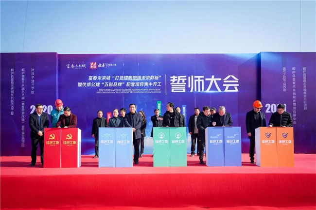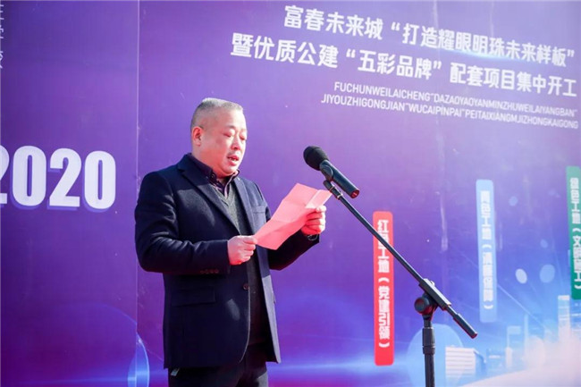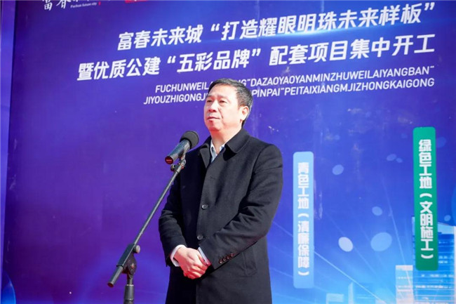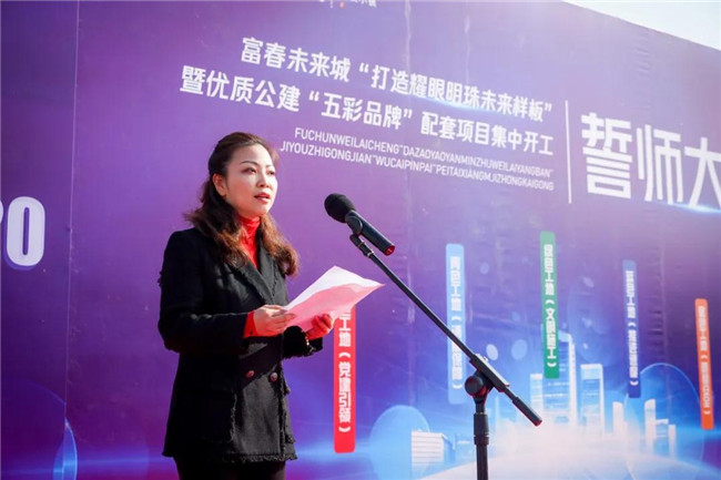 本次大会由富春未来城市发展中心党委副书记、副主任王涛主持。副县长丁干作本次誓师大会动员讲话,要求进一步明确建设目标;进一步强化建设理念;进一步加快建设进度。富春未来城市发展中心党委副书记、主任张丁玎就项目建设布置相关工作要求。县委常委、富春未来城市发展中心党委书记施建华做了重要讲话,并宣布富春未来城“耀眼明珠,五彩工地”品牌项目集中开工。